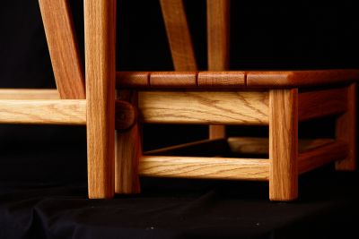 Materiaal: Sloveens Eiken; zitting en rugleuning gestoffeerd